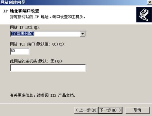 1)网站IP地址栏可以选择全部未分配选项也选择本机的IP地址,建议使用本机的IP地址。
