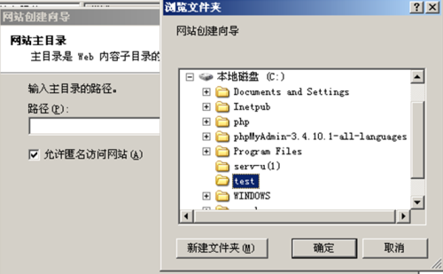5、选择网站存放路径,并勾选允许匿名访问网站