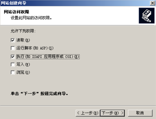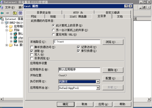 3)设置网站“主目录”选项,执行权限选择“纯脚本”: