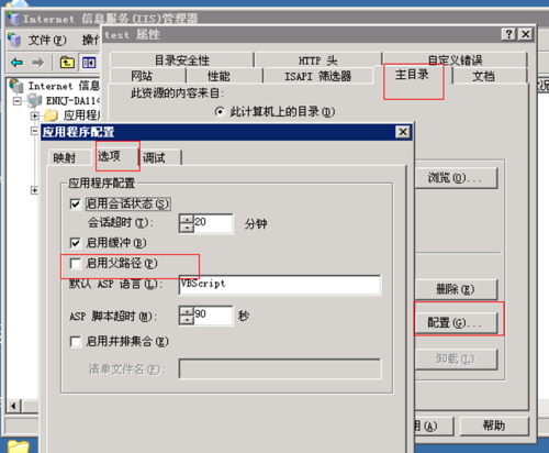4)应用程序配置:点击“配置”选项,进入应用程序配置选择“选项”菜单,选择“启用父路径”,点击确定,完成: