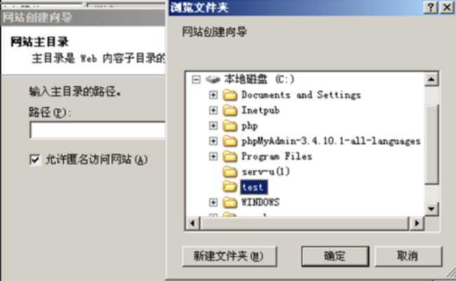 5、选择网站存放路径,并勾选允许匿名访问网站
